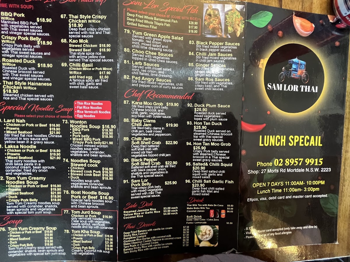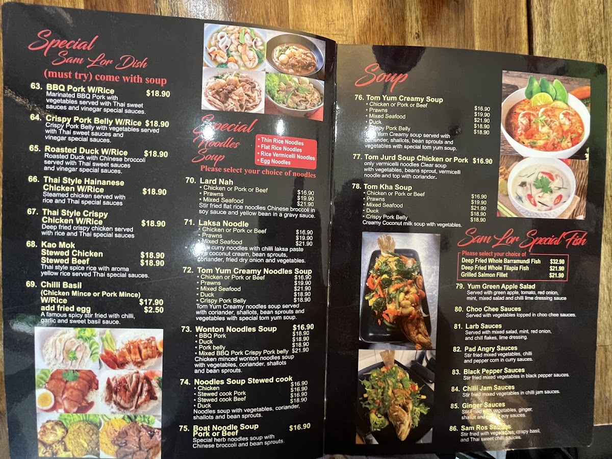 Sam Lor THAI Restaurant Menu